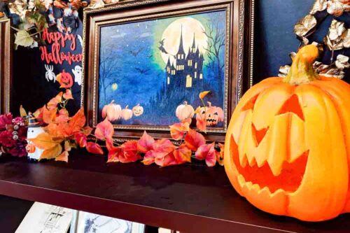 ハロウィン装飾大きな棚いろんな小物たくさん