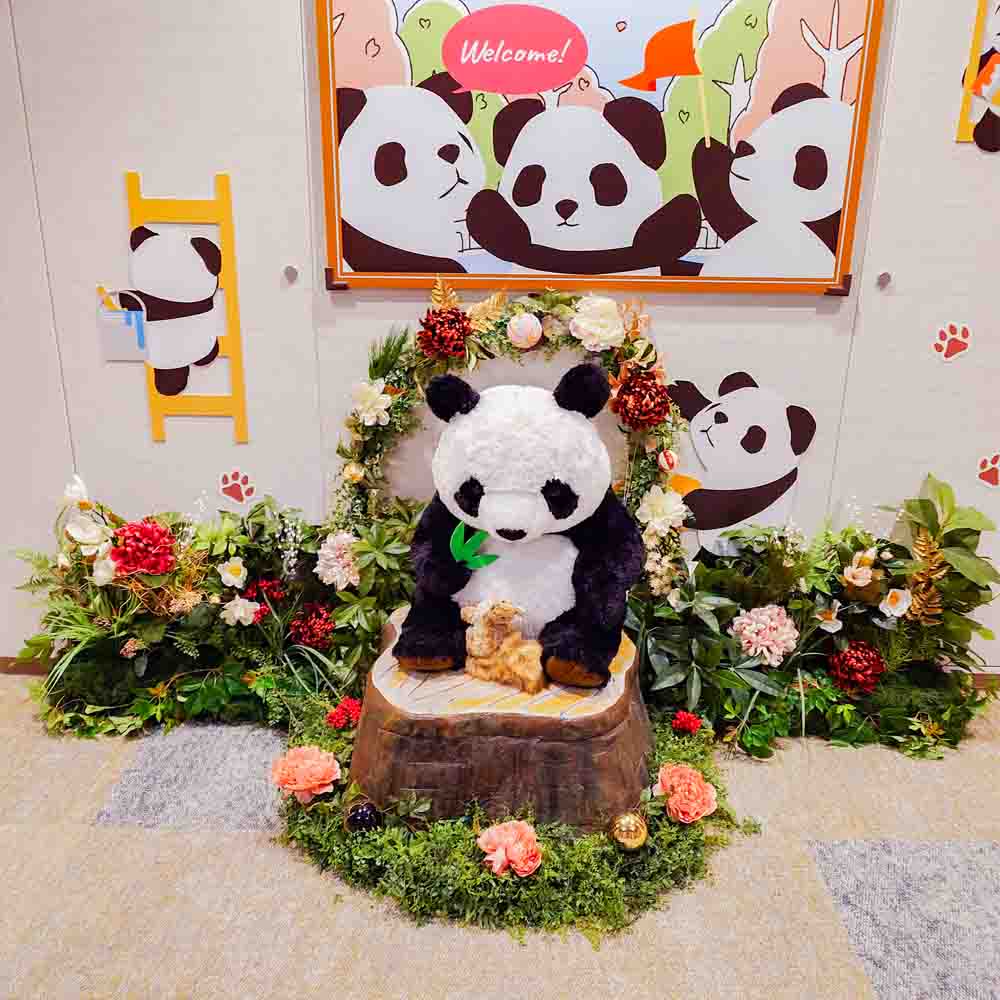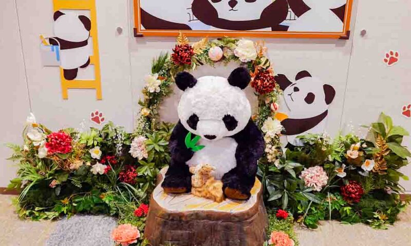 パンダさん周りの花を冬仕様にチェンジしました。