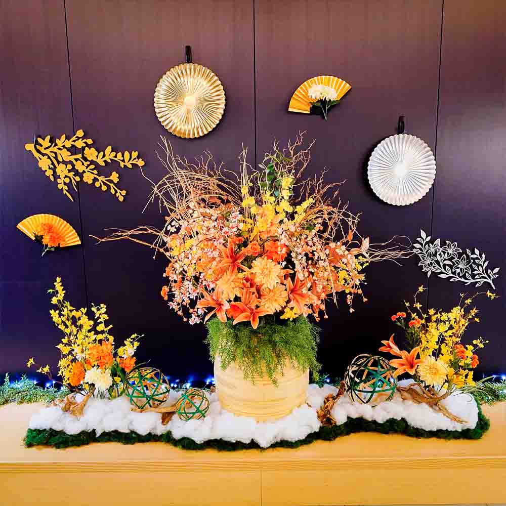 ホテルエントランスのディスプレイコーナーの冬バージョンの事例です。