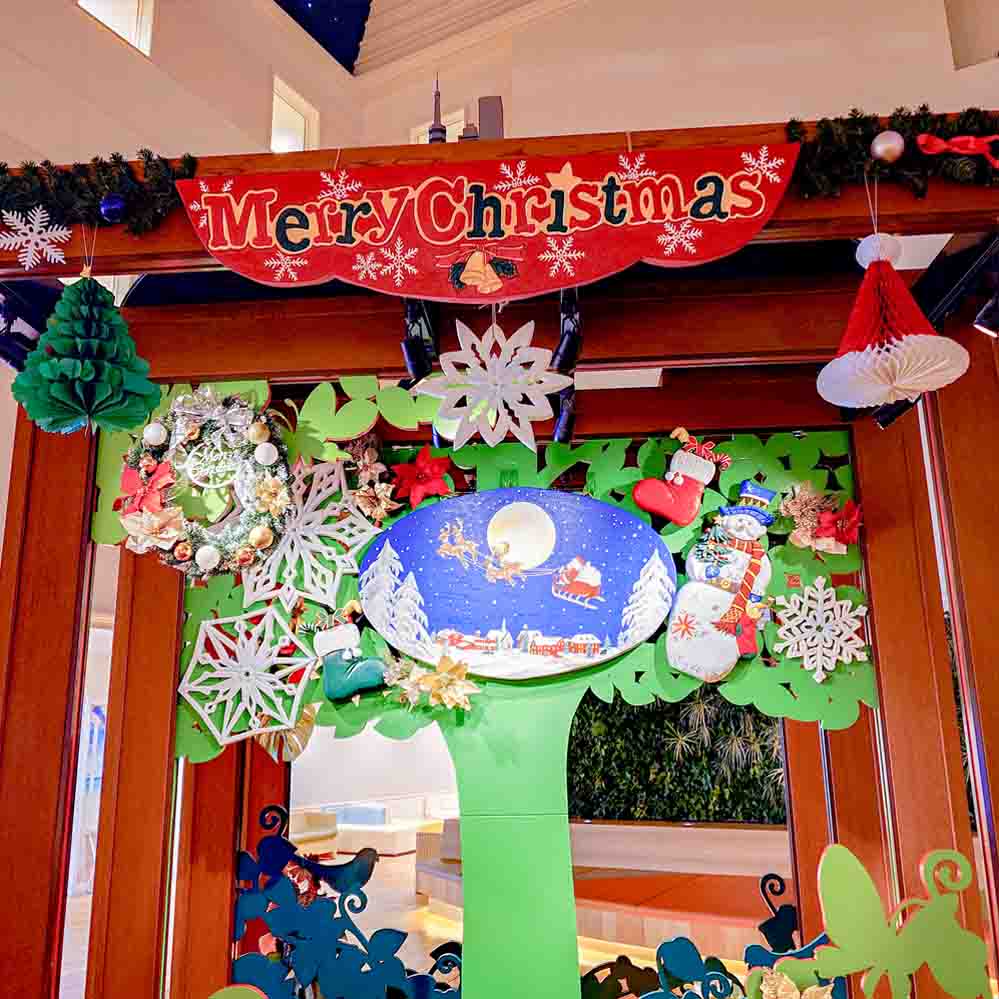 大きな楕円造形をメインにXmasの賑やかなアイテムを
