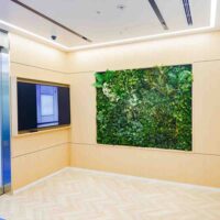 天井付近の垂れているグリーンにもオーナメントとライトをつけて、