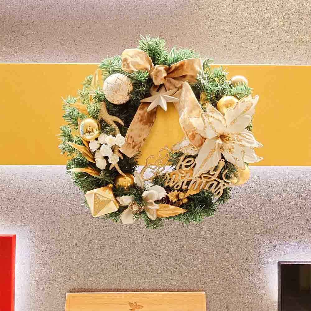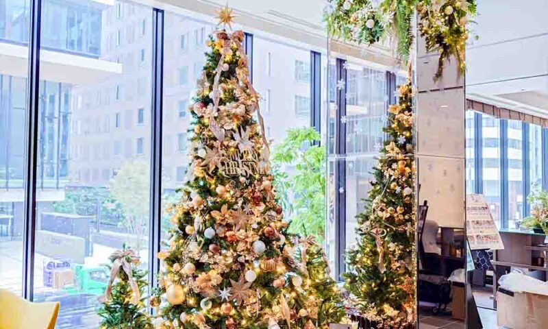 ホテルエントランスのクリスマスデコレーションです。