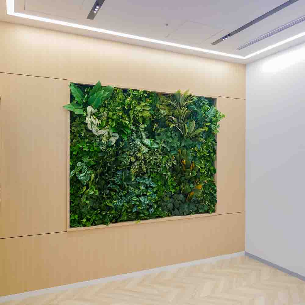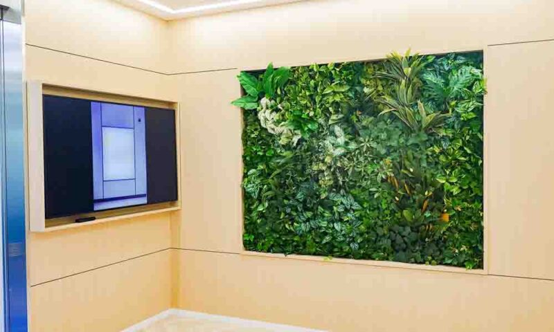 オフィスエントランスの取り外し可能な壁面緑化
