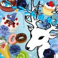 アジサイ、クレマチス、矢車草、スカビオサ、アザミなどのブルー系の花を散らして